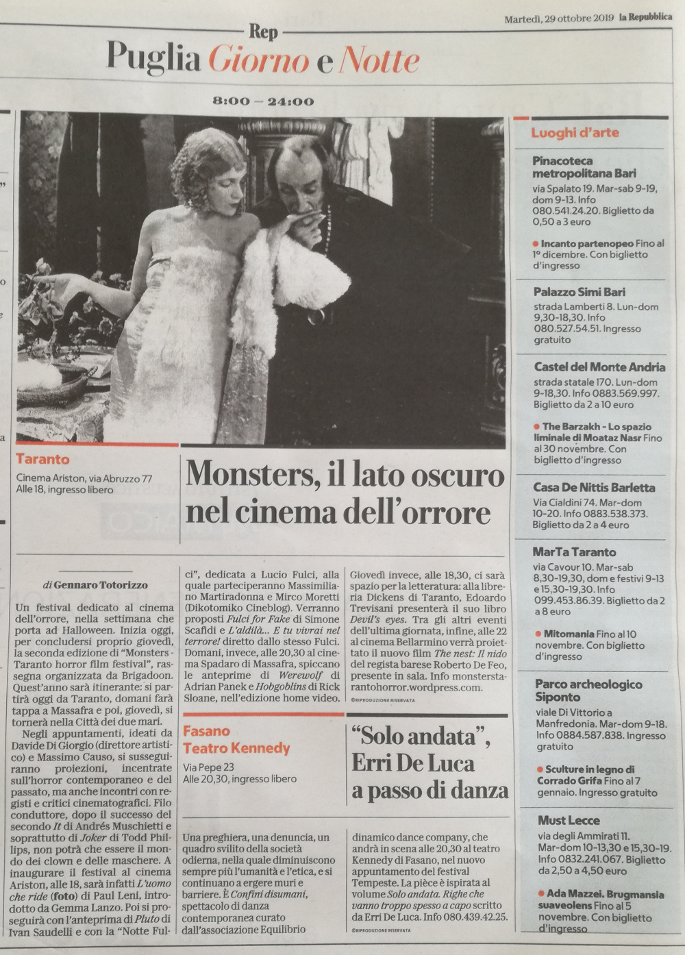 28/10/19 – Bonculture: Monster, il viaggio tra epoche e icone del festival del cinema horror a Taranto