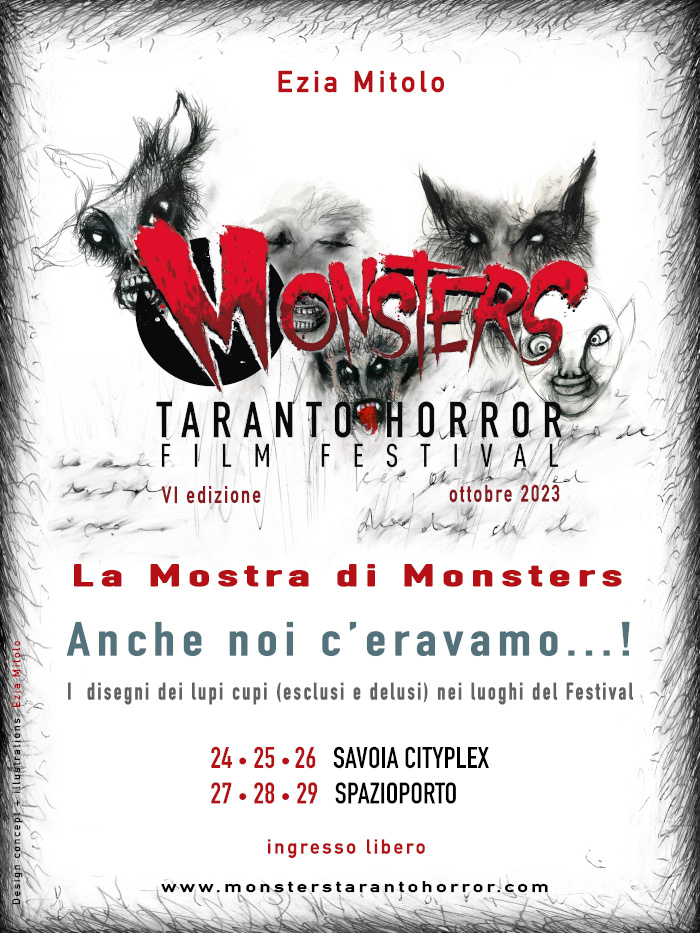 In occasione della sesta edizione di Monsters, l’artista tarantina Ezia Mitolo ha realizzato diversi bozzetti per la locandina, che vengono raccolti in un evento speciale per tutti e sei i giorni del festival: l’esposizione sarà visitabile al Savoia Citiyplex e allo Spazioporto dal 24 al 29 ottobre!